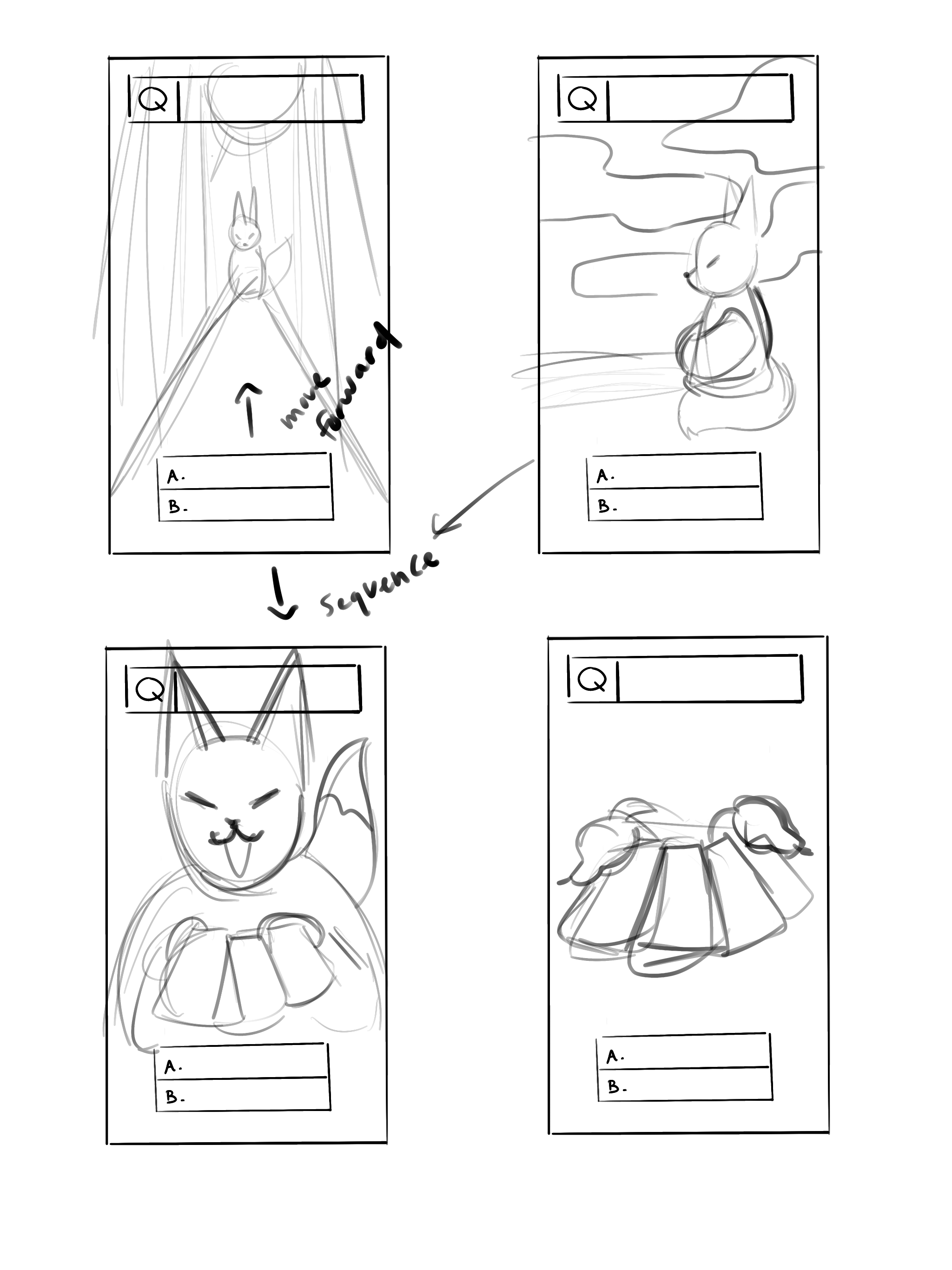 I needed people to take my quiz before the quiz was visually developed, that way I can get a sense of what people were thinking without the distraction of visual elements. I used the quiz maker website uQuiz and input my questions and drawings. I asked my roommate to take the test, and asked him about initial feelings, wording of the questions, and how he felt while taking it.